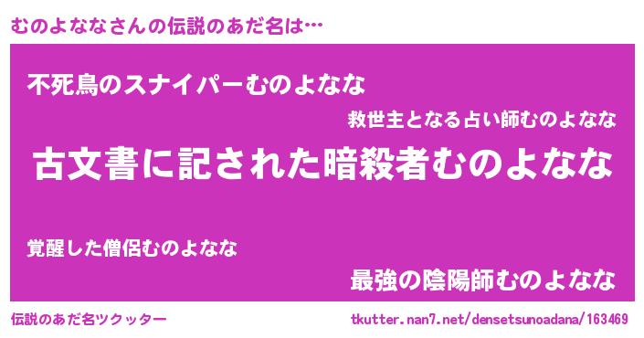 | 欧米人風あだ名 | 『むのよなな・ステッグマイヤー』 |