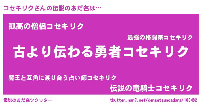 | ヒーロー風カッコイイあだ名 | 『最強戦士コセキリク』『ネオコセキリク』 |