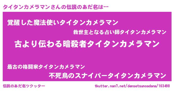 | 意味不明あだ名 | 『永久保存タイタンカメラマン』 |