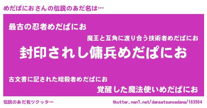 | ヒーロー風カッコイイあだ名 | 『スーパーメダパニオ』『仮面メダダー』 |