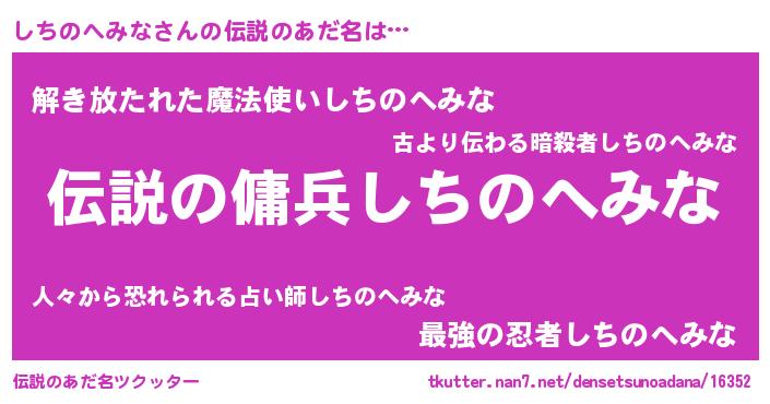 | 胡散臭い通販商品みたいなあだ名 | 『必ず成功する水晶球…その名も「しちのへみな」』 |