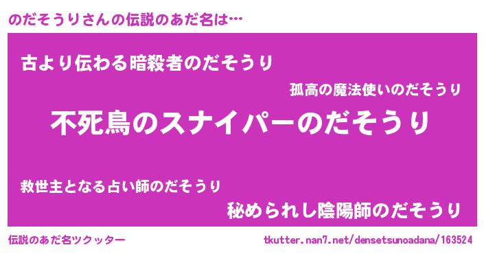 | ヒーロー風カッコイイあだ名 | 『スーパーノダソウリ』『ネオノダソウリ』 |