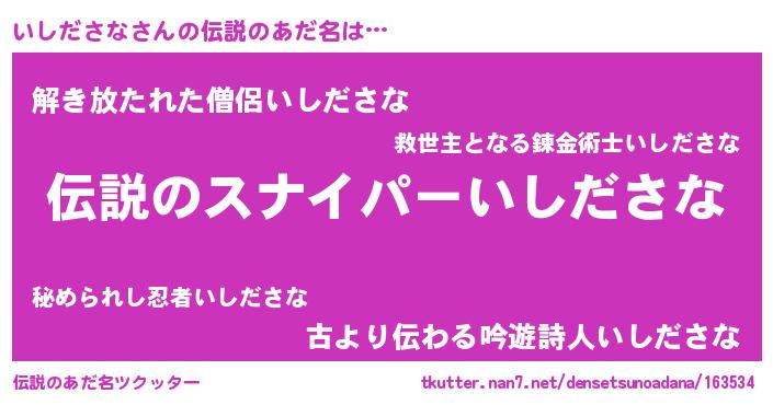 | ヒーロー風カッコイイあだ名 | 『スーパーイシダサナ』『幻影騎士イシ』 |