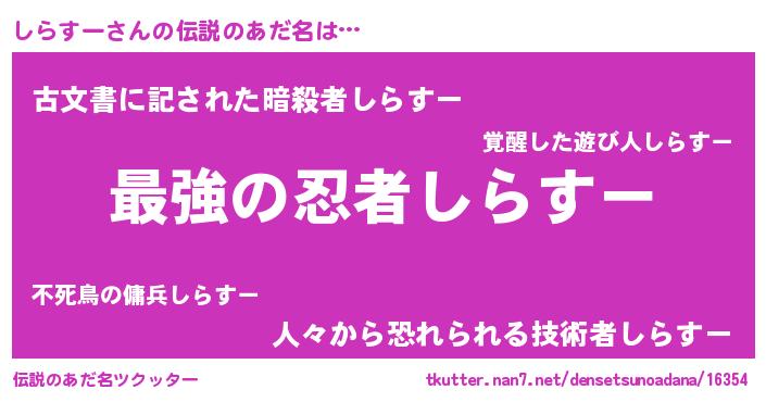 | 意味不明あだ名 | 『しらすーフォーエバー』『自称しらすー』 |