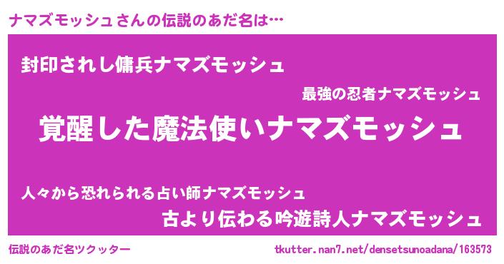 | ポケモン風あだ名 | 『ナマゴンZ』『ナーマイ』 |