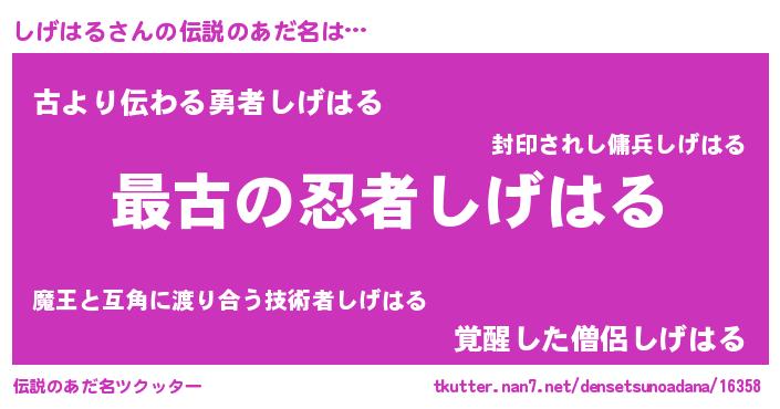 | ヒーロー風カッコイイあだ名 | 『ウルトラしげはるマン』『ネオシゲハル』 |