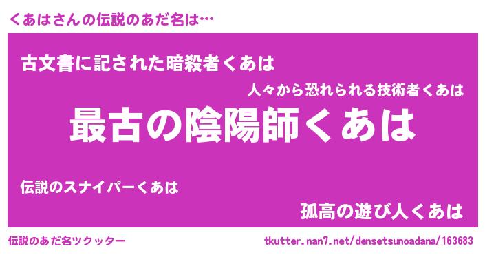 | 意味不明あだ名 | 『くあはフォーエバー』『永久保存くあは』 |