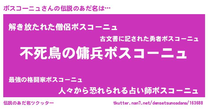 | ヒーロー風カッコイイあだ名 | 『スーパーボスコーニュ』『暗黒騎士ボス』 |