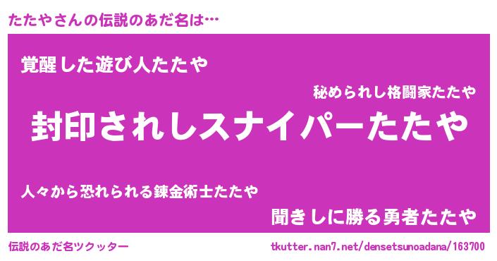 | ヒーロー風カッコイイあだ名 | 『仮面タタダー』『スーパータタヤ』 |