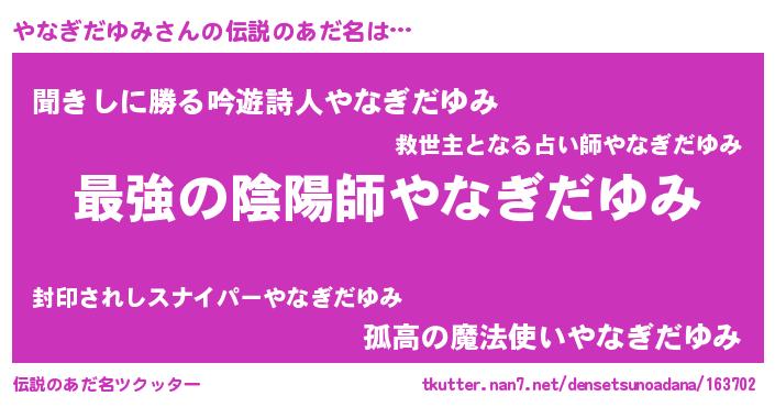 | ファンタジー風あだ名 | 『エターナルヤナギダユミー』 |
