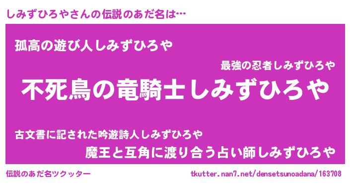 | ヒーロー風カッコイイあだ名 | 『スーパーシミズヒロヤ』『魔戒騎士シミ』 |