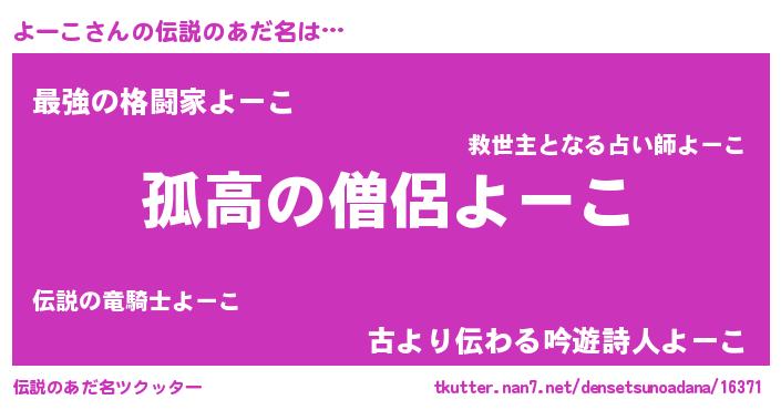 | 意味不明あだ名 | 『とにかく怪しいよーこ』『自称よーこ』 |