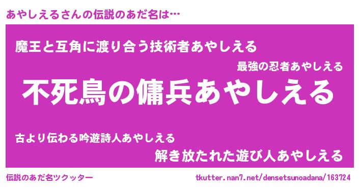 | ヒーロー風カッコイイあだ名 | 『スーパーアヤシエル』『炎刃騎士アヤ』 |