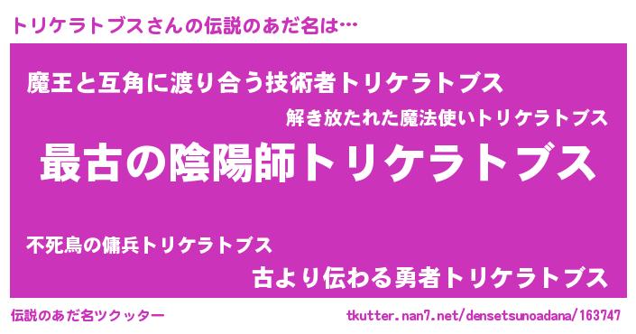 | ファンタジー風あだ名 | 『エターナルトリケラトブスー』 |