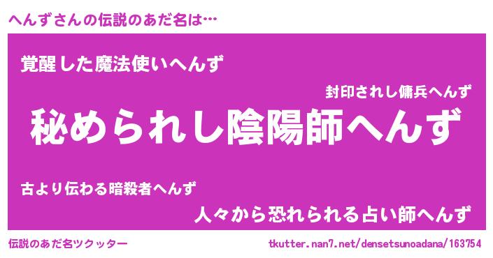 | 意味不明あだ名 | 『へんずフォーエバー』『自称へんず』 |