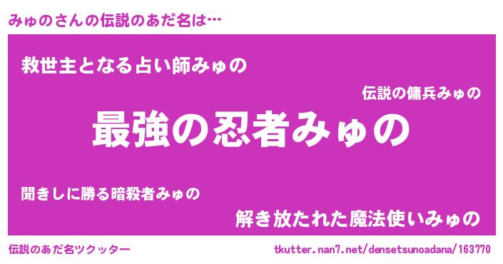 | ヒーロー風カッコイイあだ名 | 『ウルトラみゅのマン』『仮面ミュダー』 |