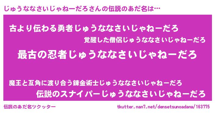 | ヒーロー風カッコイイあだ名 | 『ウルトラじゅうななさいじゃねーだろマン』 |