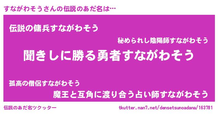 | 意味不明あだ名 | 『永久保存すながわそう』 |