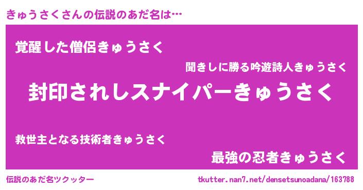 | 男性向けラノベタイトル風あだ名 | 『キュウサクアートオンライン』 |