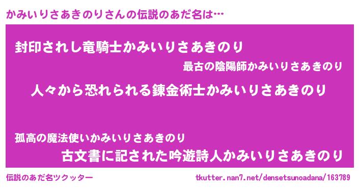 | 意味不明あだ名 | 『住所不定無職かみいりさあきのり(77歳)』 |