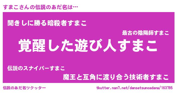 | 女子向けラノベタイトル風あだ名 | 『すまこ様がみてる』『すまこ伯爵の花嫁』 |