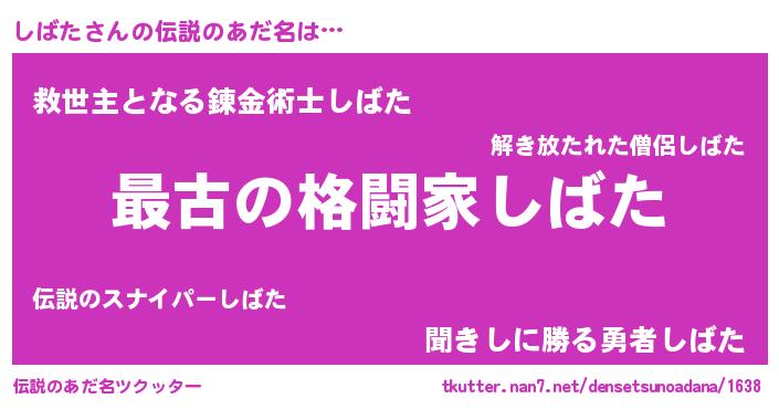 | 男性向けラノベタイトル風あだ名 | 『しばたに滅ぼされるだけの簡単なお仕事です』 |