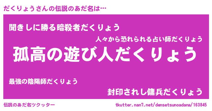 | ヒーロー風カッコイイあだ名 | 『暗黒騎士ダク』『ネオダクリョウ』 |