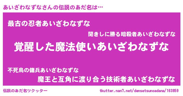 | 胡散臭い通販商品みたいなあだ名 | 『あなたにだけ特別に提供する100年もののヴィンテージワイン…その名も「あいざわなずな」』 |