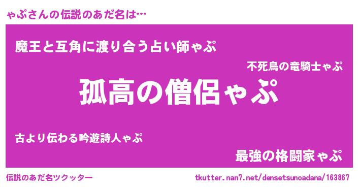 | ヒーロー風カッコイイあだ名 | 『黄金騎士ャプ』『愛の使者ゃぷ』 |
