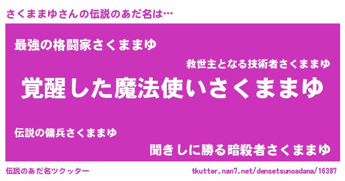 | 男性向けラノベタイトル風あだ名 | 『さくままゆの嫁は女の子じゃないと思った?』 |