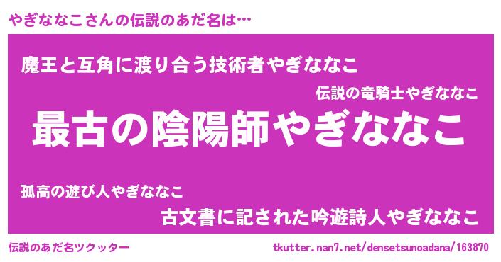 | 女子向けラノベタイトル風あだ名 | 『闇のやぎななこ』 |
