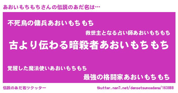 | 胡散臭い通販商品みたいなあだ名 | 『来世でも幸せになれる健康食品…その名も「あおいもちもち」』 |