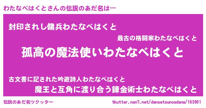 | 欧米人風あだ名 | 『わたなべはくと・ステッグマイヤー』 |