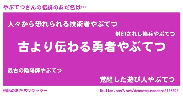 | ヒーロー風カッコイイあだ名 | 『ネオヤブテツ』『友情の使者やぶてつ』 |