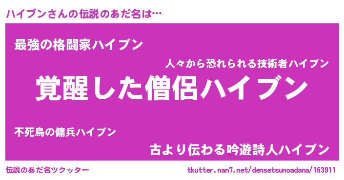 | ヒーロー風カッコイイあだ名 | 『究極戦士ハイブン』『幻影騎士ハイ』 |