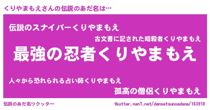 | 意味不明あだ名 | 『くりやまもえフォーエバー』 |