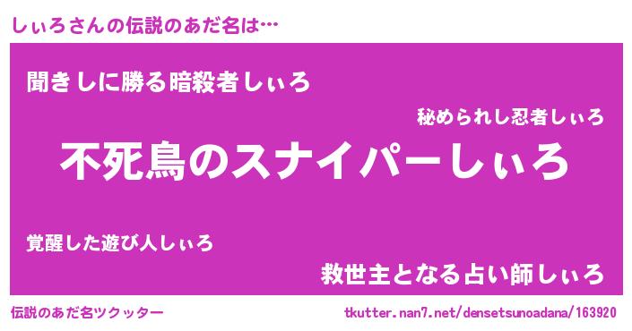 | ヒーロー風カッコイイあだ名 | 『スーパーシィロ』『仮面シィダー』 |