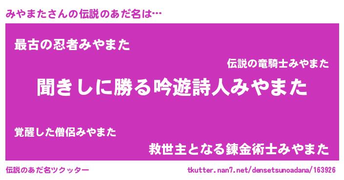 | 意味不明あだ名 | 『永久保存みやまた』 |