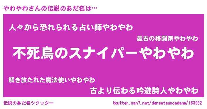 | 意味不明あだ名 | 『住所不定無職やわやわ(84歳)』 |