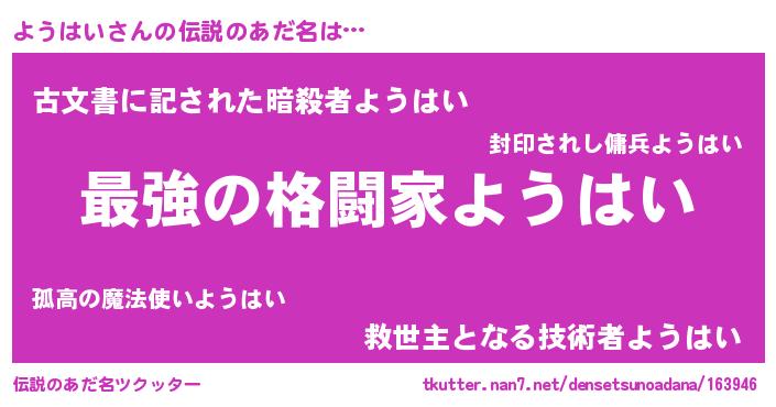 | 意味不明あだ名 | 『ようはいフォーエバー』 |