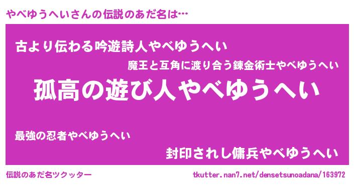 | ヘコむあだ名 | 『やべっちょ』『やべゆうへい(笑)』 |