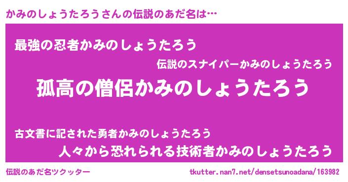 | 女子向けラノベタイトル風あだ名 | 『かみのしょうたろうは平凡を望む』 |