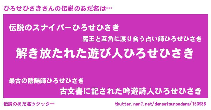 | 肩書あだ名 | 『ひろせひさきプロデューサー』 |