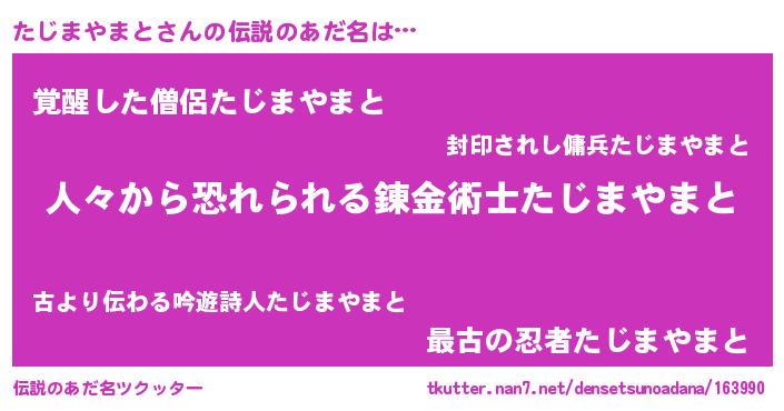 | 男性向けラノベタイトル風あだ名 | 『おまえをオタクにしてやるから、俺をたじまやまとにしてくれ! 』 |