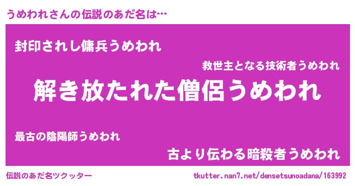 | 意味不明あだ名 | 『とにかく怪しいうめわれ』 |