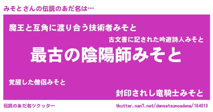 | 意味不明あだ名 | 『みそとフォーエバー』『自称みそと』 |