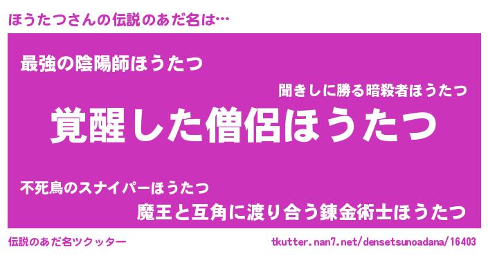 | 女子向けラノベタイトル風あだ名 | 『ほうたつ様がみてる』『闇のほうたつ』 |