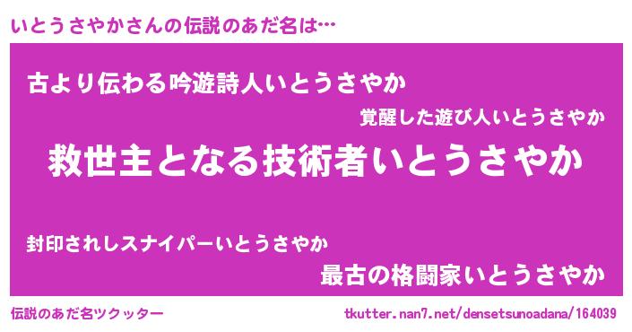 | ファンタジー風あだ名 | 『クインイット』『イトディッシュ』 |