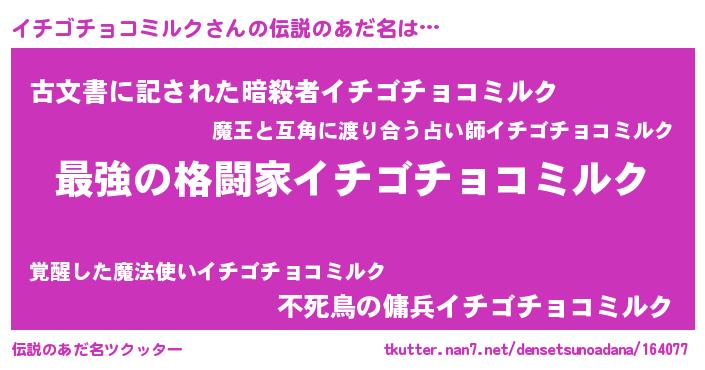 | ファンタジー風あだ名 | 『エターナルイチゴチョコミルクー』 |