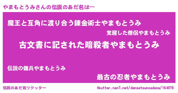 | 胡散臭い通販商品みたいなあだ名 | 『前代未聞の健康食品…その名も「やまもとうみ」』 |